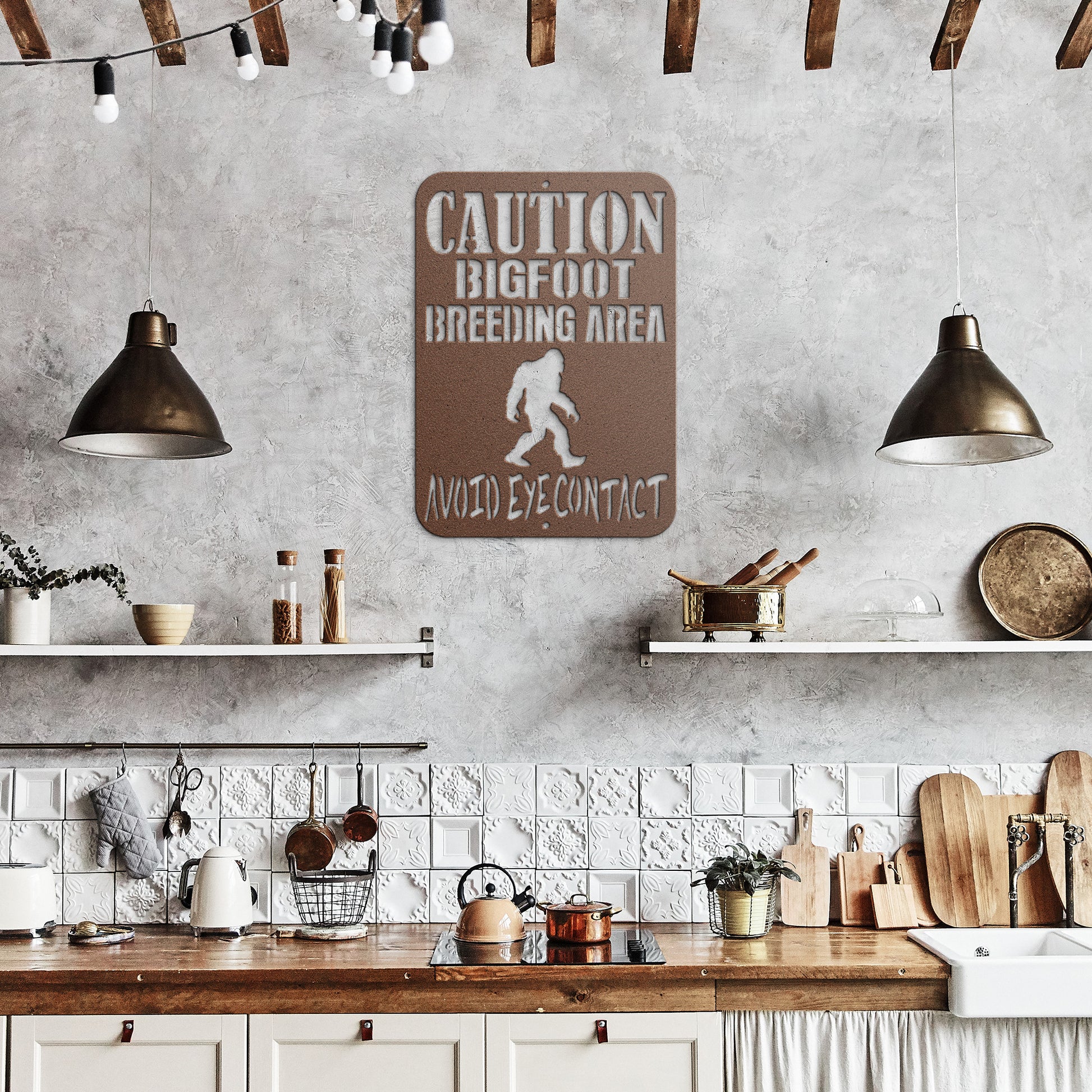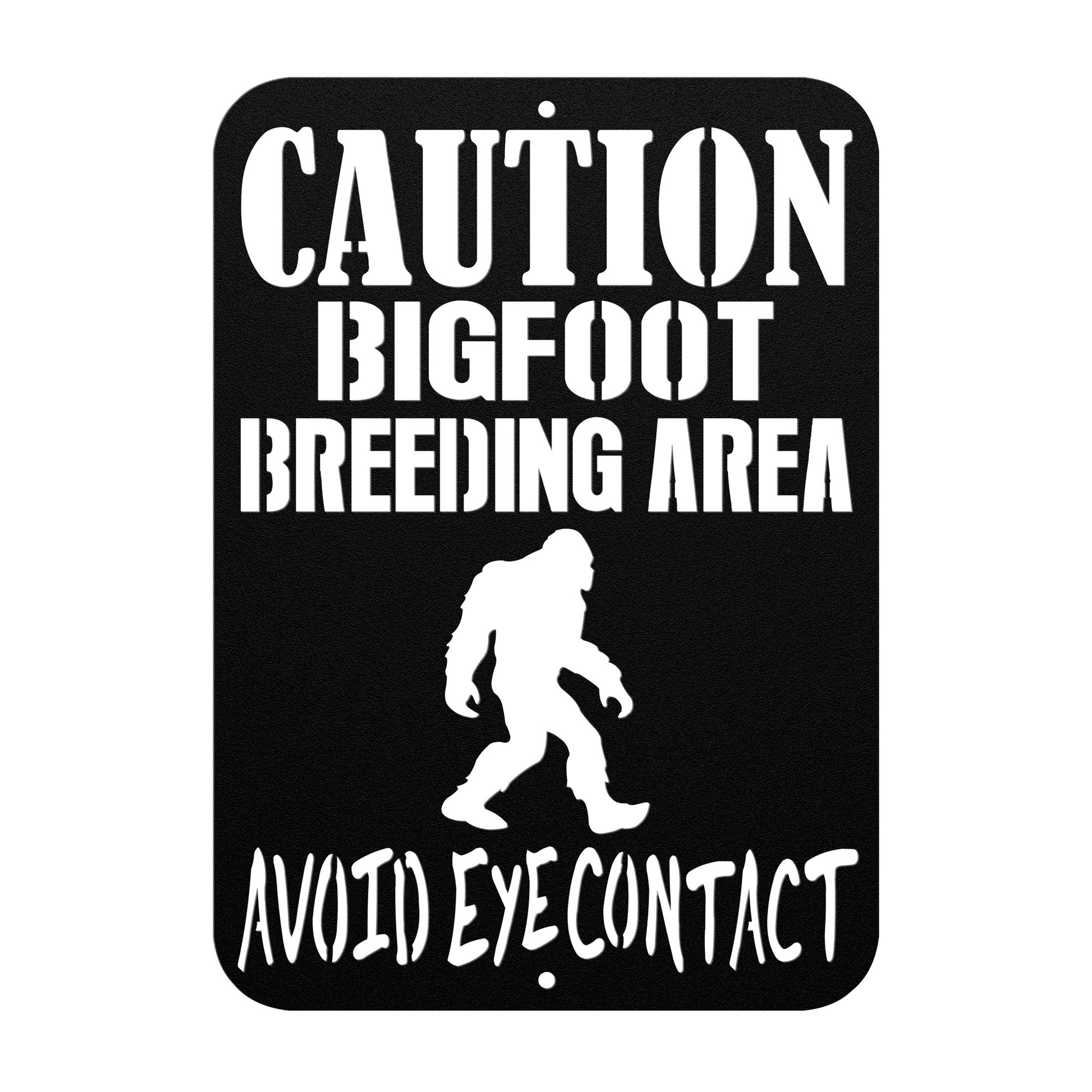 Caution, Bigfoot Breeding Area - Avoid Eye Contact Metal Sign